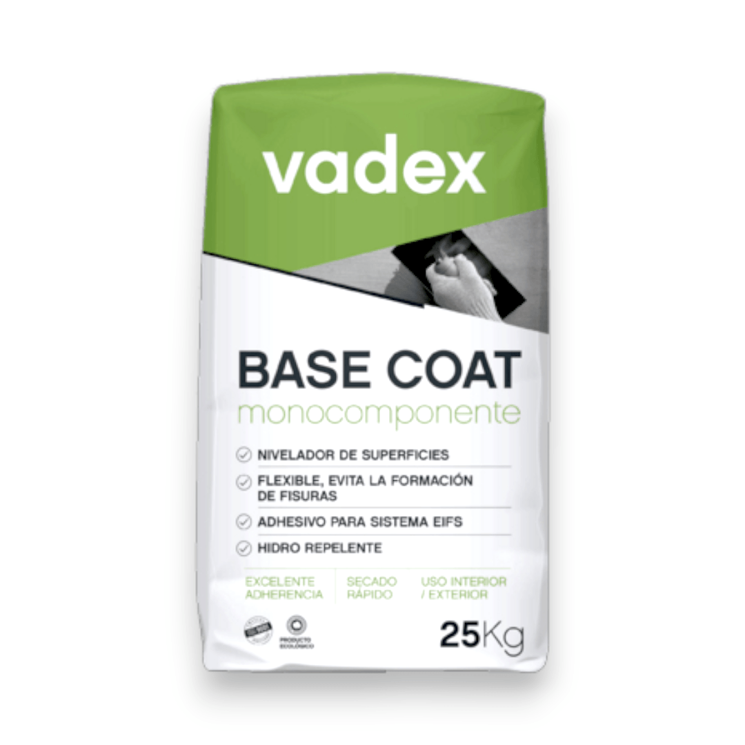 Base Coat Monocomponente es un mortero cementicio listo para preparar con solo agregar agua. Ideal para nivelar superficies, fijar mallas de fibra de vidrio y adherir poliestireno expandido en sistemas EIFS. Ofrece excelente adherencia, repele el agua y ayuda a evitar fisuras, dejando las superficies listas para pinturas o revestimientos. Viene en bolsas de 25 kg y rinde hasta 14,5 m².