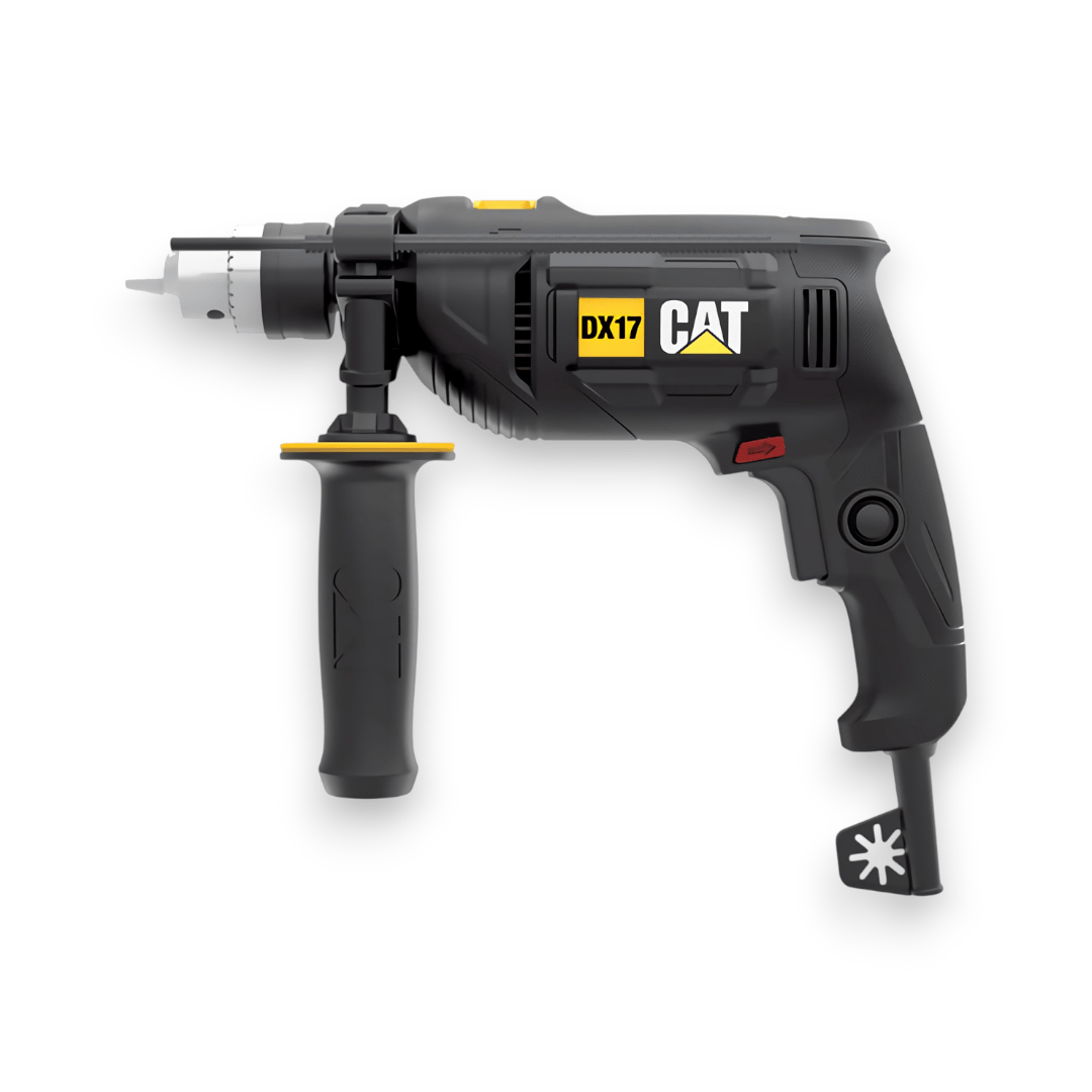 El mango moldeado en goma ofrece un agarre cómodo y antideslizante, mejorando la estabilidad y la seguridad en cada tarea. Con capacidad de perforación de hasta 30 mm en madera, 13 mm en acero y 16 mm en concreto, el CAT DX17 se convierte en un aliado confiable para instalaciones en el hogar, montaje de muebles, fijación de estantes y mucho más.