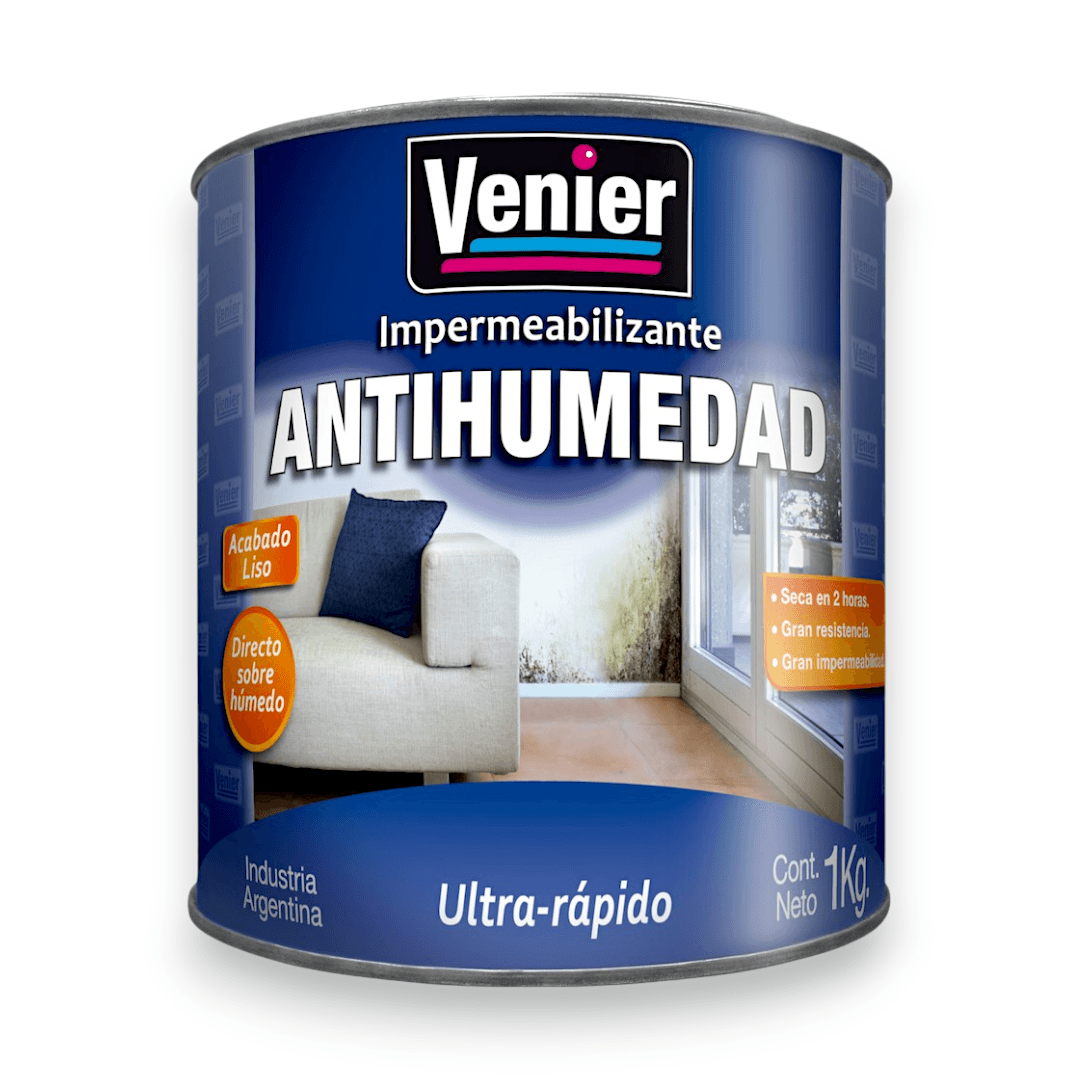 Es un producto impermeabilizante de interiores y exteriores, solucionando los problemas de humedad. Antihumedad Venier puede aplicarse directamente sobre superficies húmedas, es ideal para pintar como terminación, gracias a su acabado liso mate. También se recomienda pintar con Antihumedad Impermeabilizante en todas las superficies donde se desee prevenir problemas futuros de humedad.