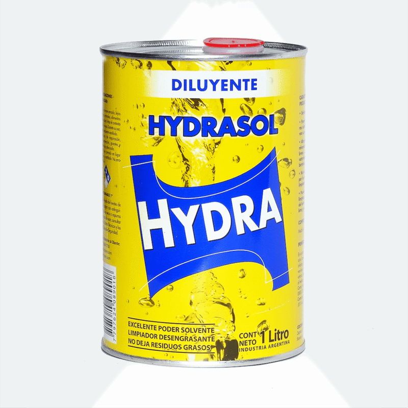Hydrasol es un solvente Industrial, de rápida evaporación. Posee gran capacidad de disolución de aceites minerales y vegetales, ceras, breas, betunes, gomas, resinas naturales y sintéticas, caucho, etc. Puede emplearse para diluir, fondos y barnices sintéticos convencionales cuando su aplicación es con soplete. También su gran capacidad de solvencia permite emplearlo para la limpieza de superficies, de herramientas o eliminación de grasas. Limpieza en seco de textiles. Ideal para acortar tiempos de trabajo.