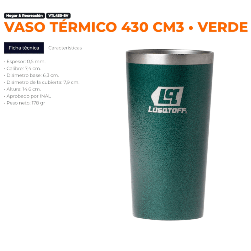El vaso térmico verde Lusqtoff de es ideal para mantener tus bebidas a la temperatura perfecta. Fabricado en acero inoxidable, conserva el calor y el frío hasta 3 horas. Su diseño compacto, resistente y ligero lo hacen el compañero perfecto para tus días en movimiento. ¡Disfruta de tus bebidas siempre a la temperatura ideal!
