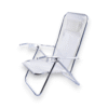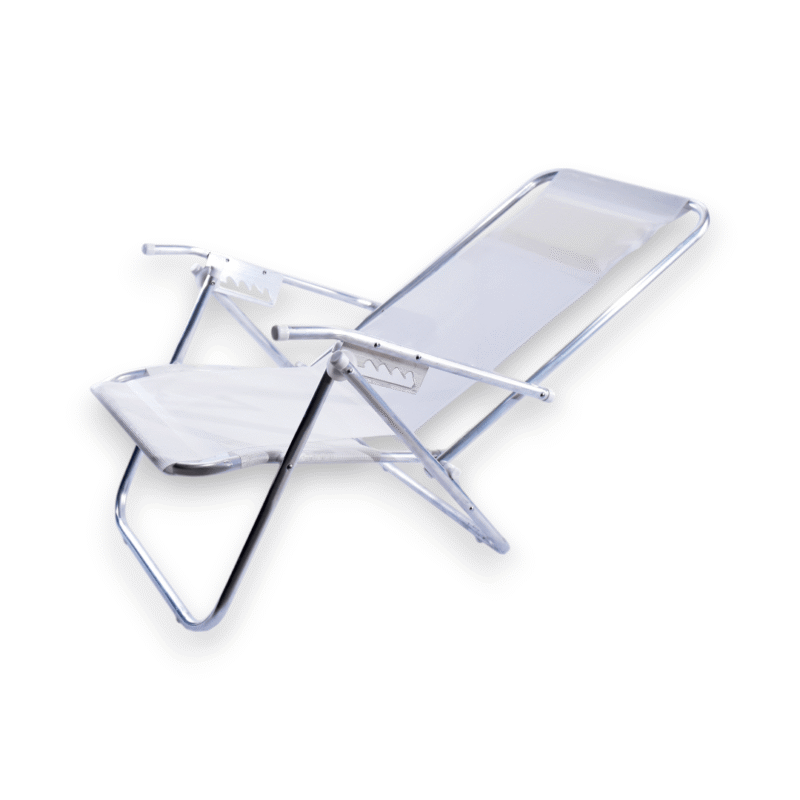 Reposera sillón, con almohada, 5 posiciones de inclinación, liviana, plegable y resistente. Construida en aluminio.