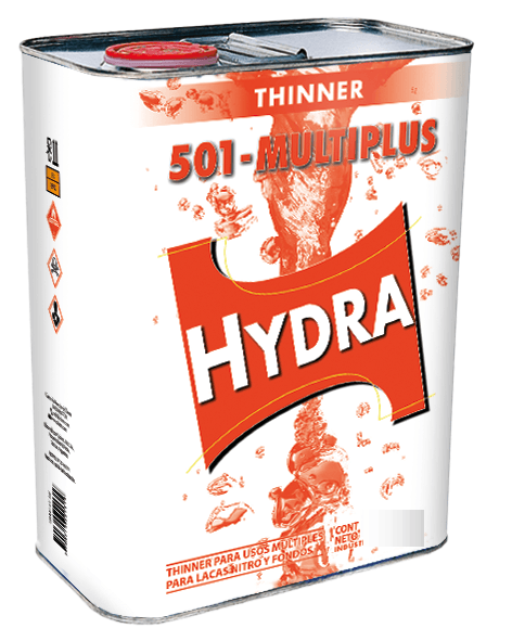 El thinner Hydra 501 Multiplus es un producto formulado para trabajos de pintura en general. Puede utilizarse para diluir lacas nitrocelulósicas, nitrosintéticas, acrílicas, masillas, limpieza de equipos y utensilios.