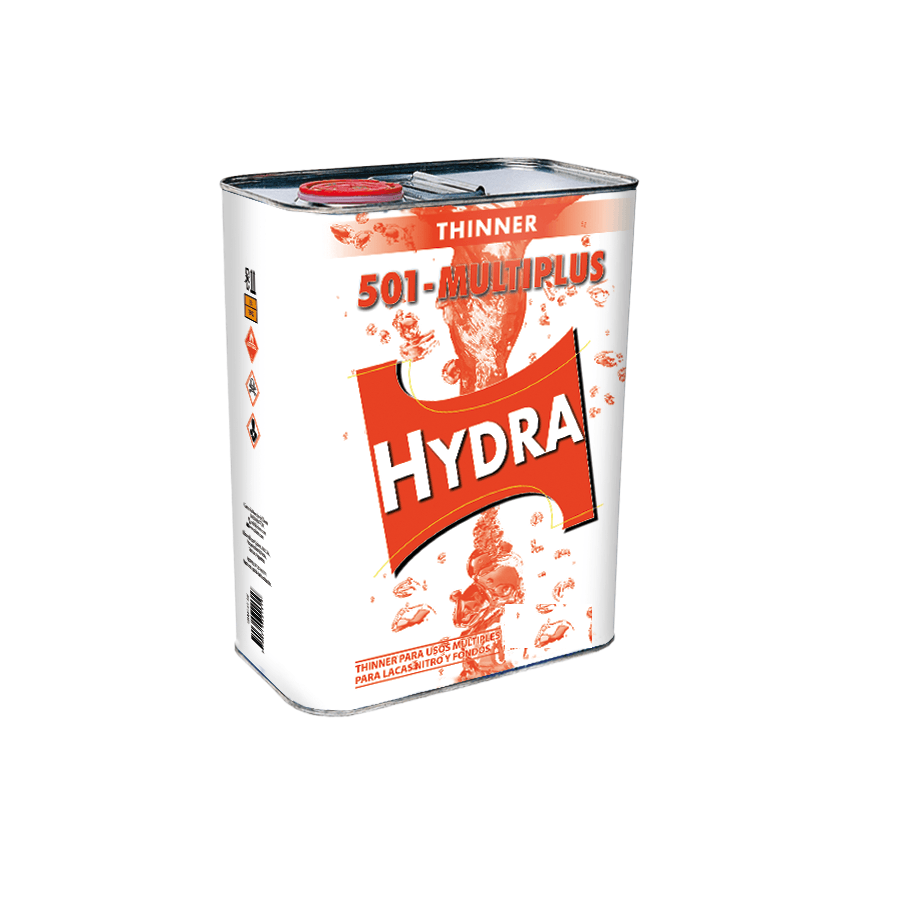 El thinner Hydra 501 Multiplus es un producto formulado para trabajos de pintura en general. Puede utilizarse para diluir lacas nitrocelulósicas, nitrosintéticas, acrílicas, masillas, limpieza de equipos y utensilios.